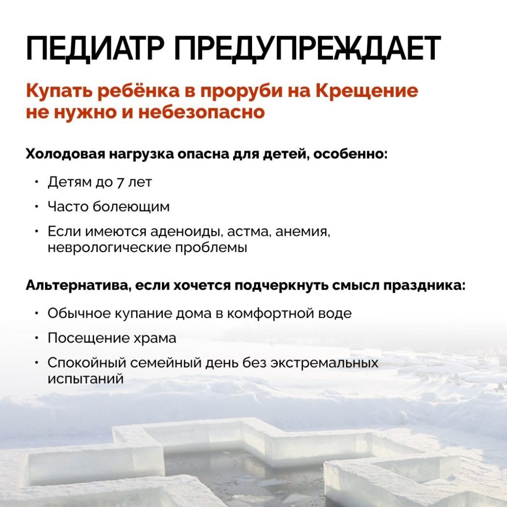 0Врач-педиатр рассказала, стоит ли брать ребёнка на купание в проруби -
