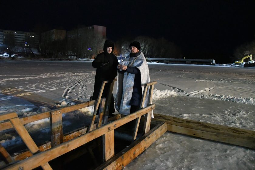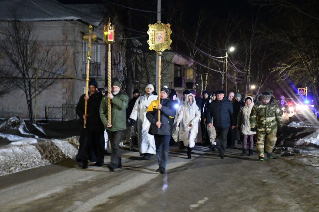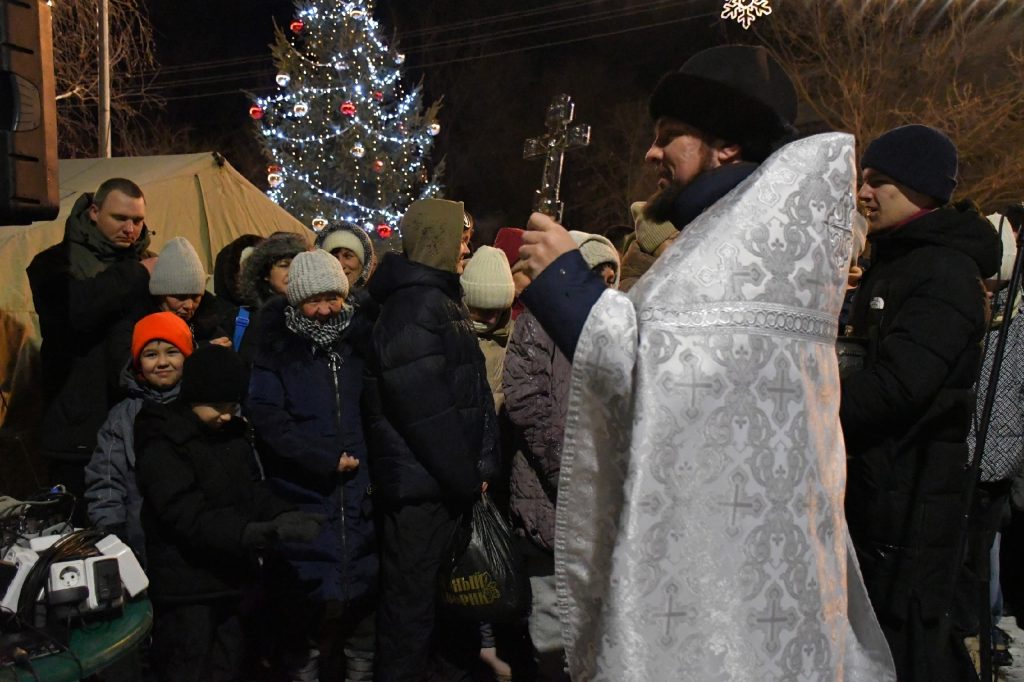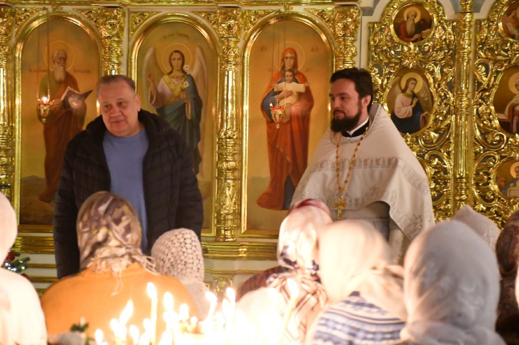 В ночь на 19 января Божественная литургия прошла в Свято-Никольском храме в Димитровграде. После богослужения крестным ходом верующие прошли до набережной Верхнего пруда, где находилась купить для крещенских купаний. Священнослужители провели обряд великого освящения воды.