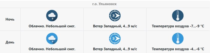 1230Прогноз погоды в Ульяновске на 16 января -