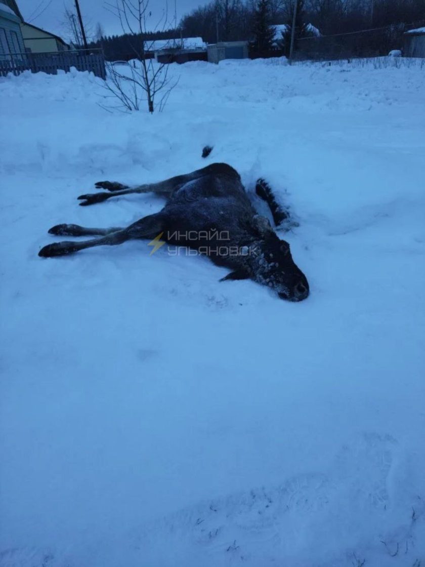 Очевидцы рассказали, что вчера днем в поселок Лесной Мелекесского района пришел лось. Он вышел к людям, некоторые полагают, что за помощью. Местные жители вызвали необходимые службы, но, к сожалению, спасти дикое животное не удалось. Он погиб.
