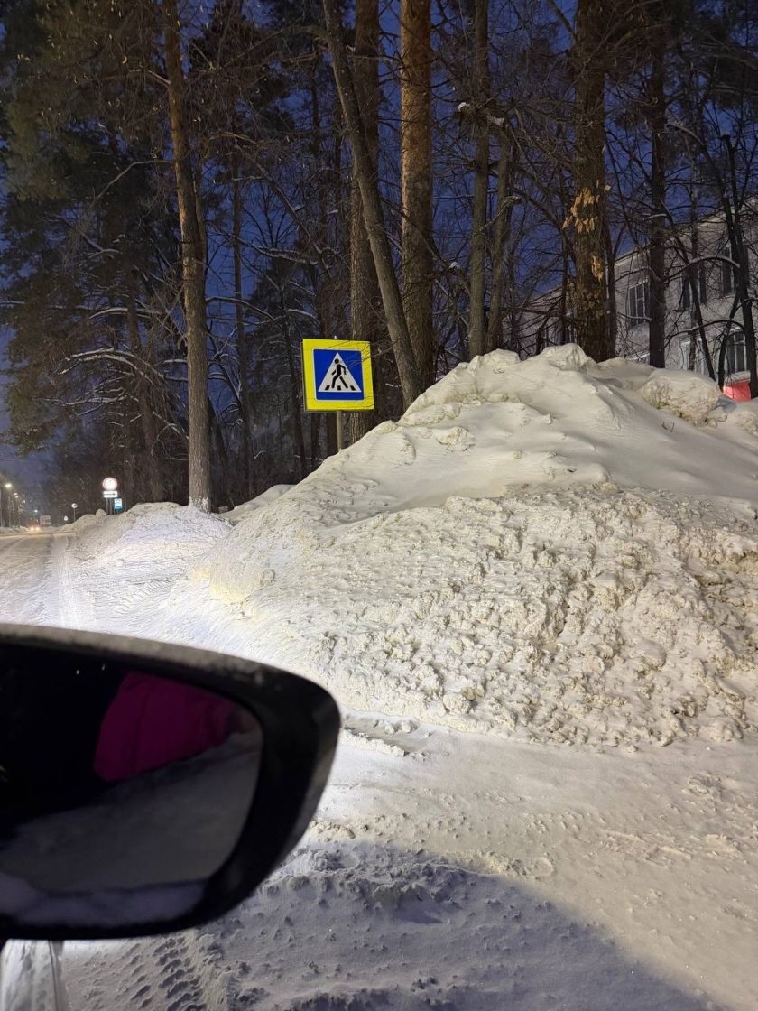 Местный житель написал: «Перекресток пр.Димитрова и ул.Менделеева. Каждый день аварийная ситуация. Когда нужно выехать — ты должен всем уступить дорогу, а как уступить если ты ничего не видишь за сугробом на повороте. Каждый день и автобусы, и легковые попадают в аварийную ситуацию (пока делала фото, перед нами была снова та же ситуация), чтобы повернуть налево нужно выехать на пол дороги и посмотреть есть ли машины, выезжаешь наугад. Дальше там же, пешеходный переход, люди просто выпрыгивают из сугроба, обратите внимание, знак то уже почти завалили, а человека там вообще не видно».