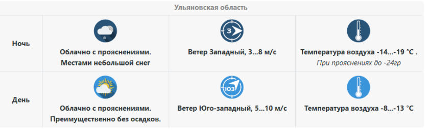 Днём 11 февраля в Ульяновской области сохранится облачная погода с прояснениями, преимущественно без осадков. Температура поднимется до −8…−13 °C. Ветер юго-западный, 5–10 м/с, местами порывистый.