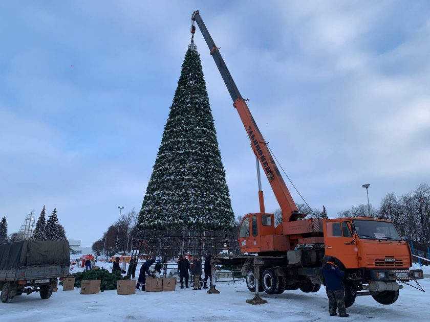Рабочие «Городского центра по благоустройству и озеленению»Ульяновска завершают разборку главной ульяновской ёлки.
