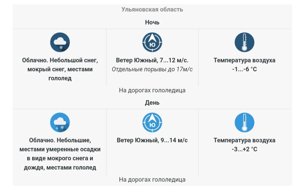 Днём, 14 февраля в Ульяновской области сохранится облачная погода. Пройдут небольшие, местами умеренные осадки в виде мокрого снега и дождя, местами гололёд. Температура повысится до −3…+2 °C. Южный ветер усилится до 9–14 м/с. На дорогах по-прежнему местами гололедица.