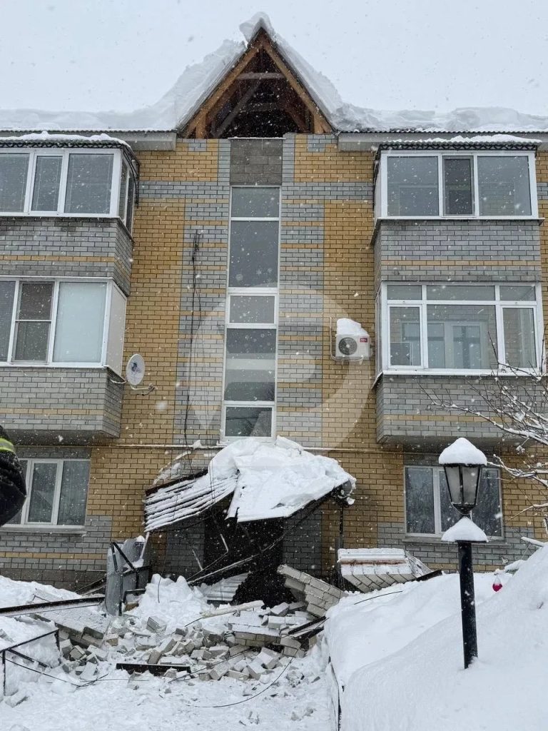 Сегодня, 16 февраля, в Инзе на козырек одного из подъездов обрушилась кирпичная кладка. На данный момент нет информации, пострадал ли кто-то во время инцидента.