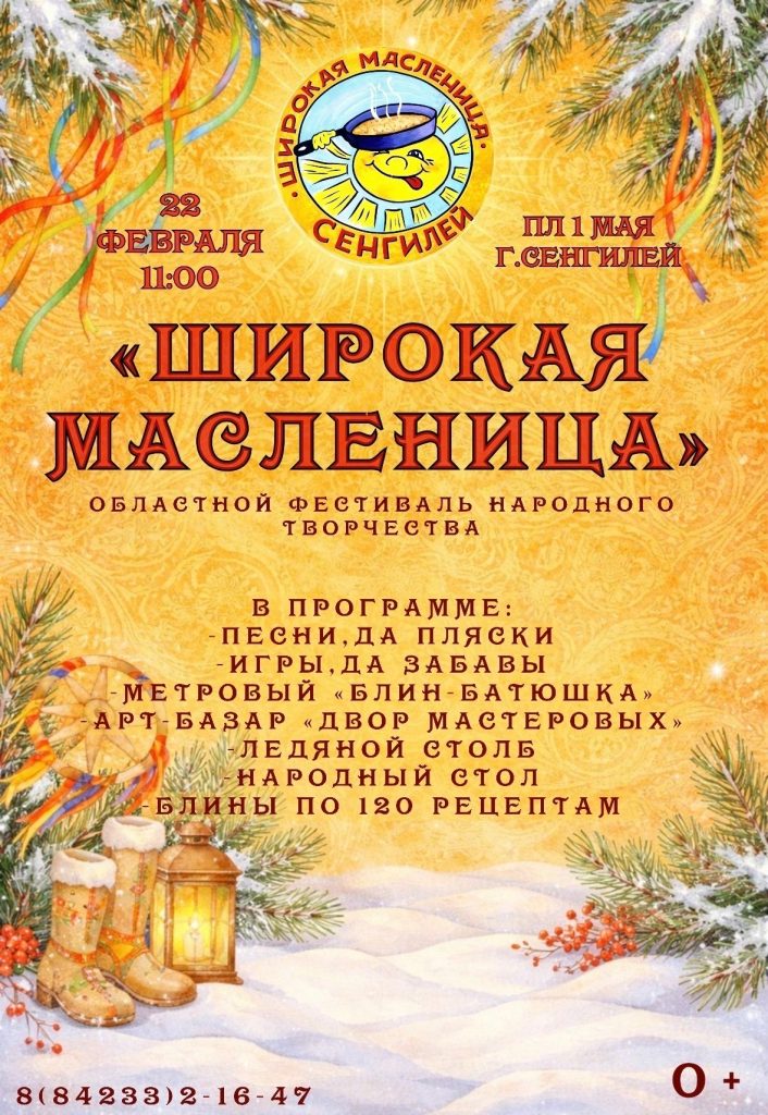 22 февраля в 11.00 стартует областной фестиваль народного творчества «Широкая Масленица – 2026». Мероприятие пройдет на площади 1 Мая Сенгилея.