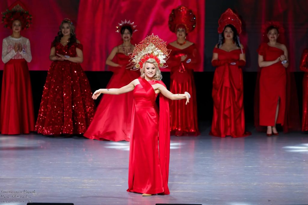 Финальная программа включала три конкурсных выхода. В первом дефиле участницы предстали в красных платьях и кокошниках как дань русским традициям и культуре. Кокошник для этого выхода Анна Васильева изготовила самостоятельно, подчеркнув тем самым свою приверженность творчеству и уважение к национальным традициям.