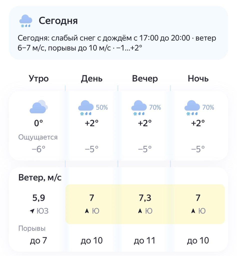 Сегодня, 2 марта, облачная погода с осадками. Порывы ветра могут быть до 10 метров в секунду. Из-за ветра ощущение, что температура воздуха ниже, как при пяти градусах мороза.