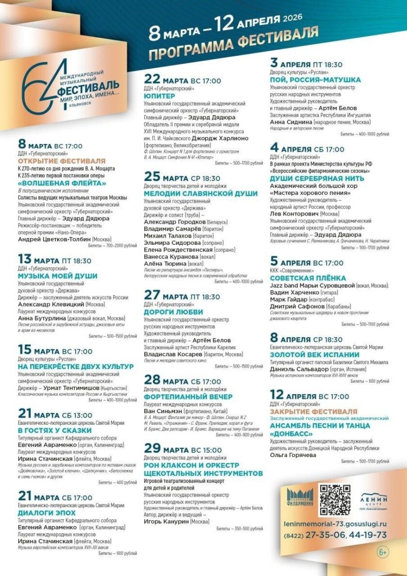 В Ульяновской области с 8 марта по 12 апреля пройдет 64-й Международный музыкальный фестиваль «Мир, Эпоха, Имена…»