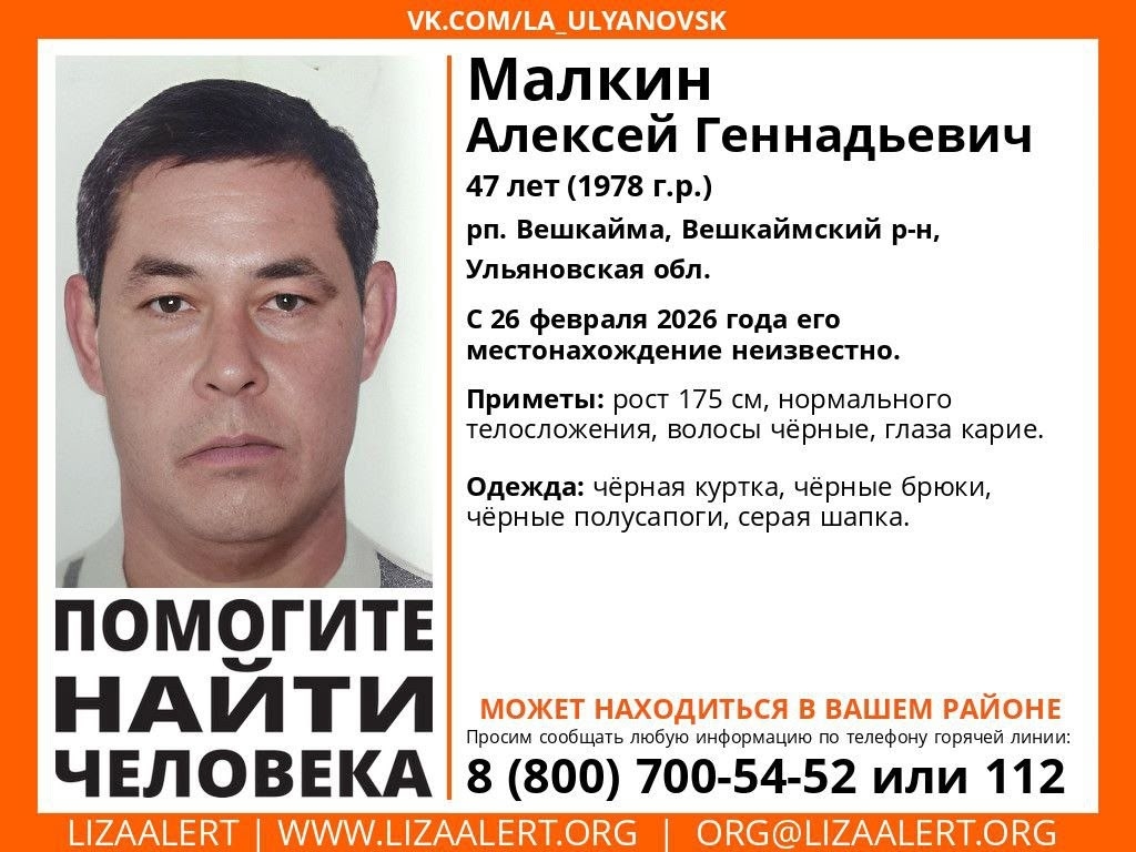 Место пропажи: рп. Вешкайма, Вешкаймский р-н, Ульяновская обл.