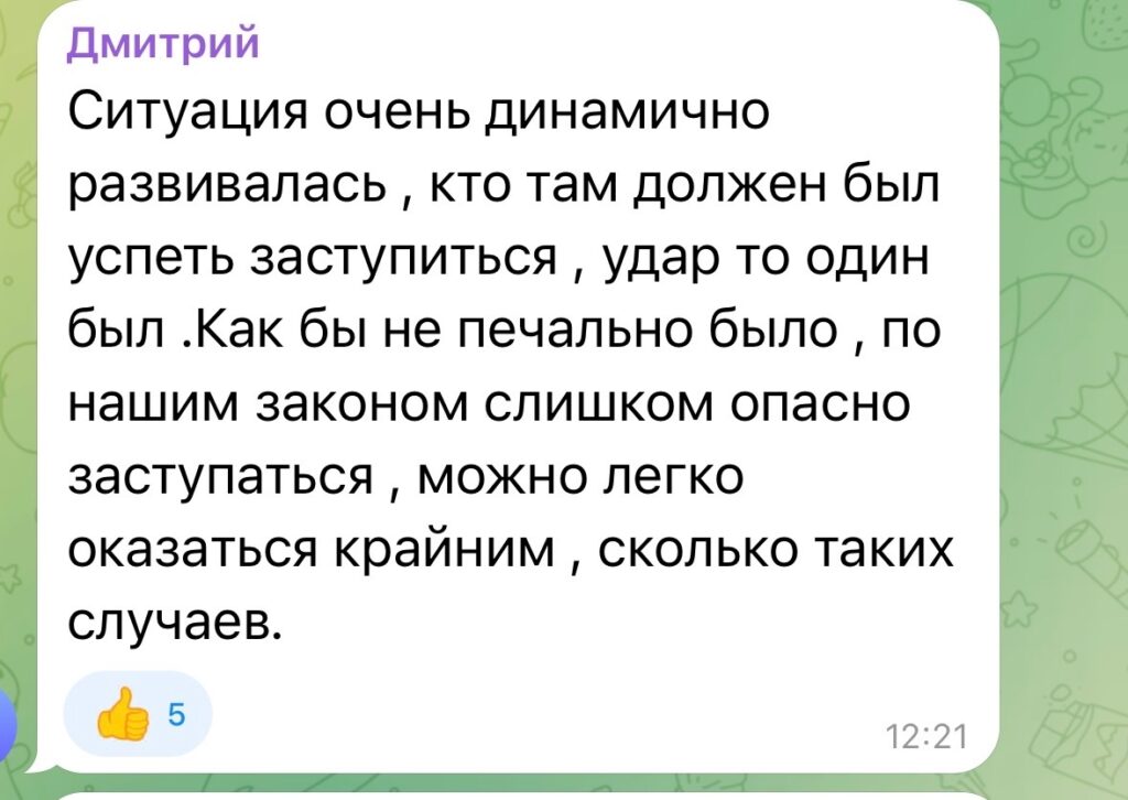 Другие же посчитали, что свидетелям вмешиваться якобы было опасно. Более того, все произошло так быстро, что люди не успели среагировать.