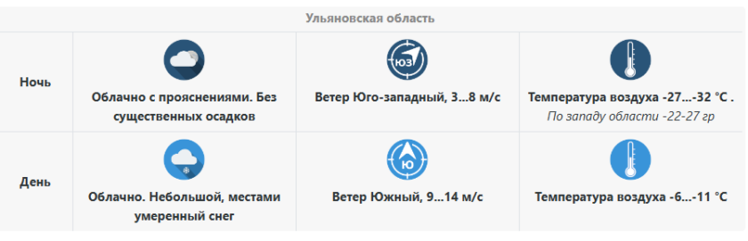 1532Прогноз погоды в Ульяновской области на 6 марта -
