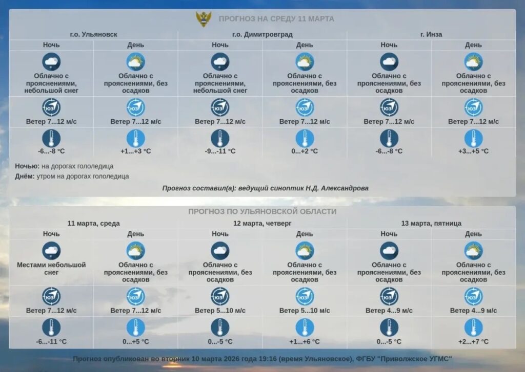 0Какая погода будет днем 11 марта в Ульяновской области -