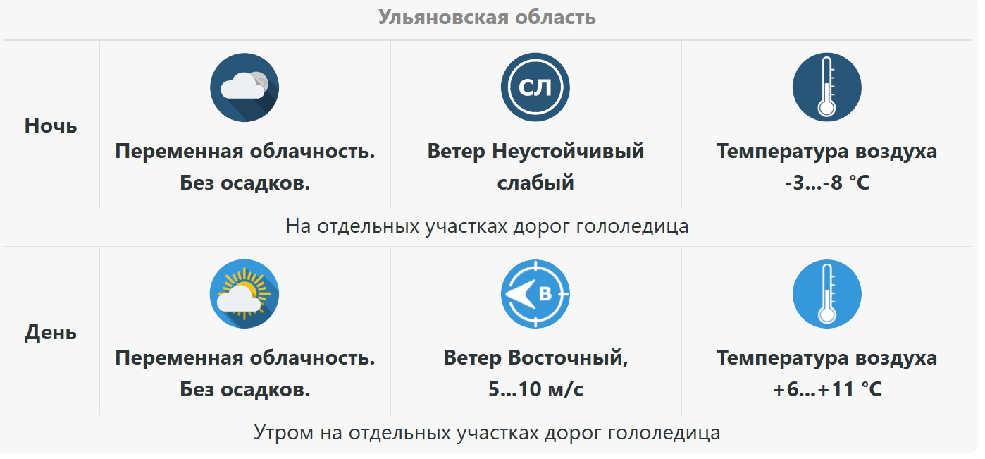 - 06:30Днем в Ульяновской области ожидается гололед