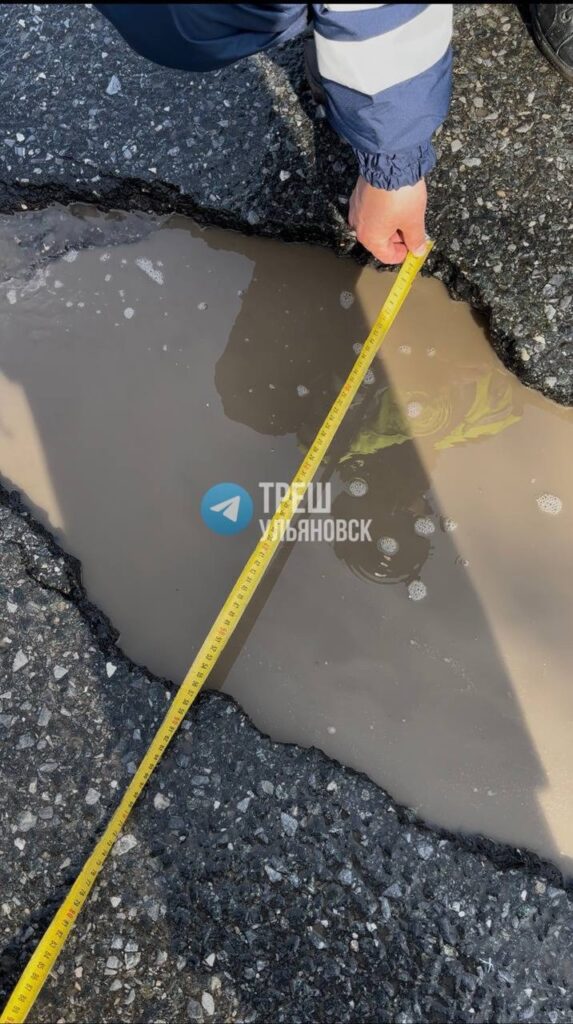 Другой водитель также сообщил, что попал в яму недалеко от центра города: «Я 18я сегодня!!! На перекрёстке возле «Гурмана» провалился асфальт, его кое-как залатали, ремонта хватило ненадолго. Теперь там торчит острый кусок асфальта, покрытый лужей. Будьте осторожны!»