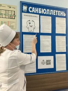 Помимо диагностических процедур, специалистами поликлиники был реализован образовательный блок: проведена серия «Уроков гигиены полости рта» в общеобразовательных учреждениях города Ульяновска и во всех отделениях Стоматологической поликлиники г. Ульяновска. В ходе уроков детям и взрослым объяснили механизмы образования зубного налёта, рассказали о том, как правильно чистить зубы, дали рекомендации по выбору средств индивидуальной гигиены, а также акцентировали внимание обучающихся на необходимости регулярных плановых осмотров стоматолога.