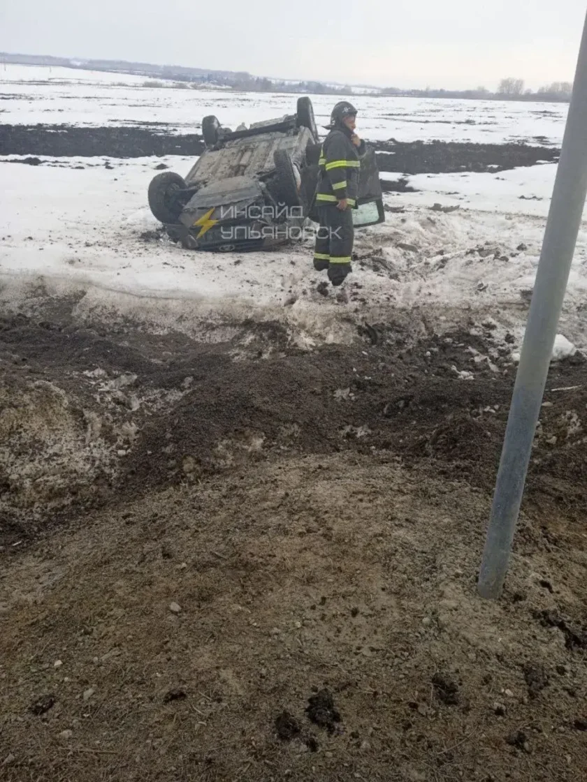 0На трассе Ульяновской области перевернулся автомобиль -