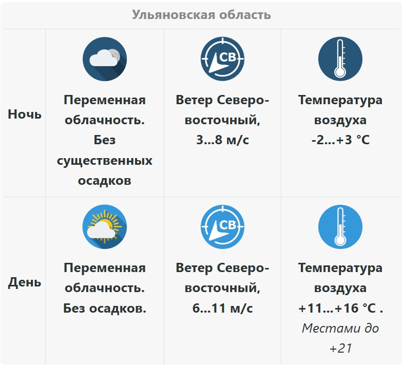 1079Прогноз погоды в Ульяновской области на 27 марта -
