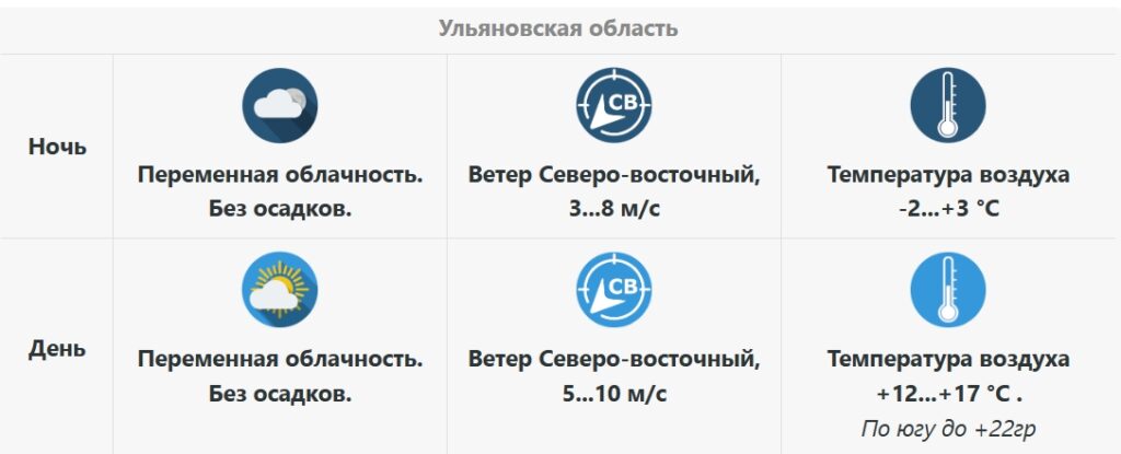 1127Прогноз погоды в Ульяновской области на 27 марта -