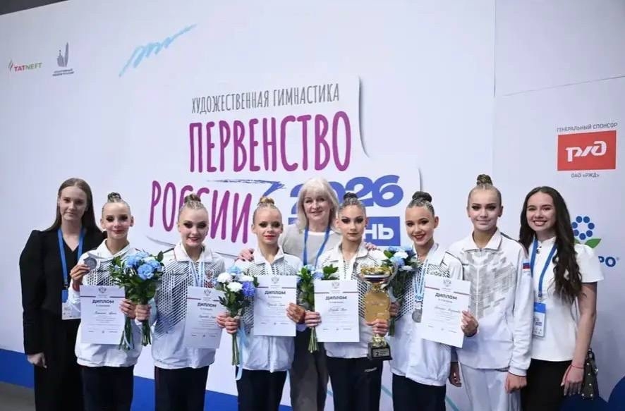 Воспитанницы СШОР по художественной гимнастике — сборная команда Ульяновской области — завоевали серебряные медали в упражнении с 5 лентами.