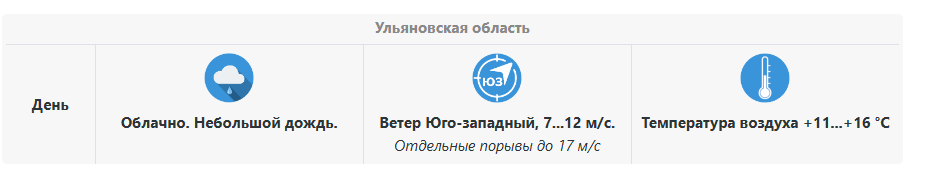 Днем 7 апреля в Ульяновской области ожидается облачная погода, пройдёт небольшой дождь. Температура воздуха составит +11…+16 °C. Ветер юго-западный, 7–12 м/с, с отдельными порывами до 17 м/с, поэтому на открытых участках может быть ветрено и не слишком комфортно.