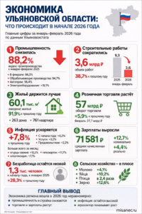 Ульяновская область вошла в 2026 год с крайне неоднородной экономической картиной. На фоне заметного спада промышленного производства и почти обвального падения строительного сектора регион сохраняет рост розничной торговли, умеренное увеличение зарплат и стабильную потребительскую активность. Такой вывод следует из свежего доклада Ульяновскстата о социально-экономическом положении региона за январь–февраль 2026 года, который изучил портал misanec.ru.