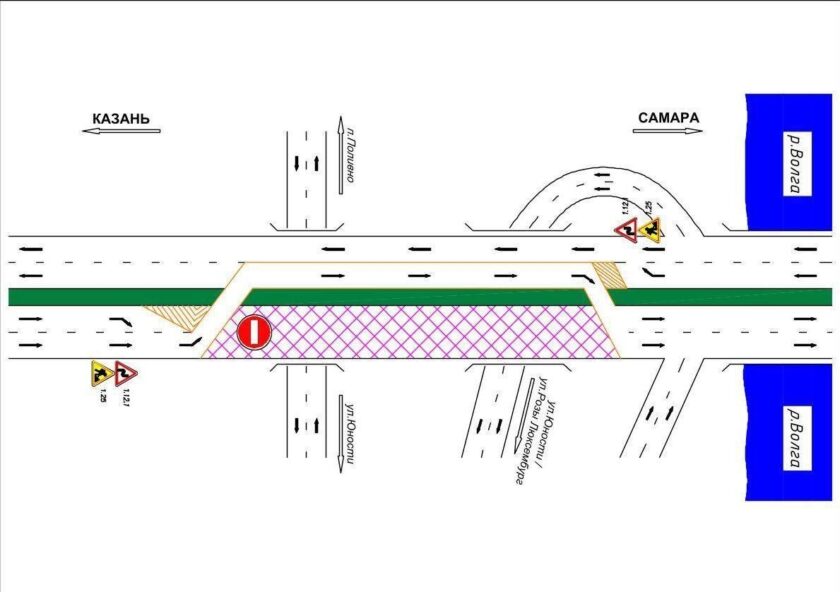 В дальнейшем планируется перекрытие левой проезжей части (в направлении г. Казани). Движение также будет организовано по одной полосе в каждом направлении, но уже по правой стороне проезжей части.