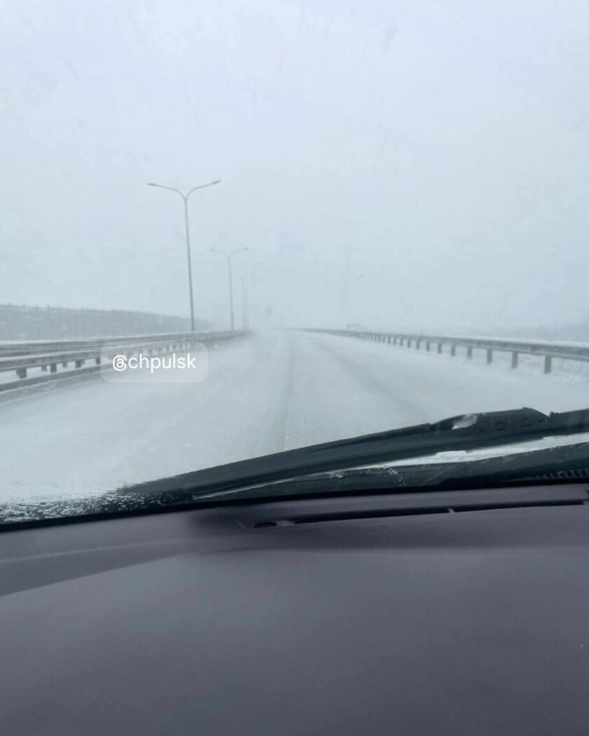 Очевидцы рассказывают, что в Татарстане идет апрельский снег. Одну из трасс в Альметьевске полностью запорошило.