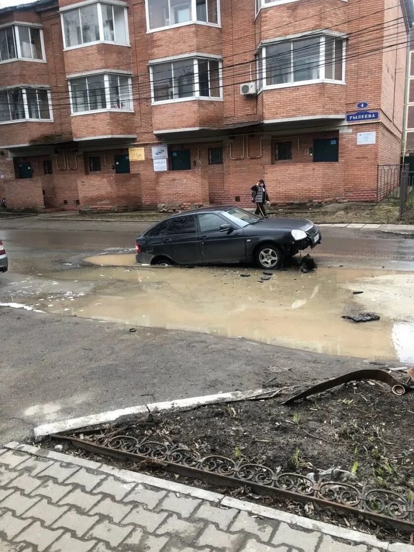 Соцсети: «Приора» провалилась в яму в Ульяновске