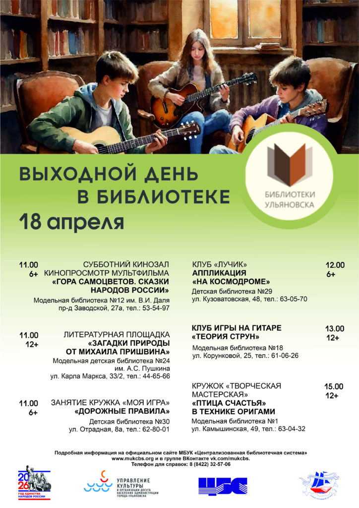 Афиша мероприятий на выходные 18 и 19 апреля в Ульяновской области