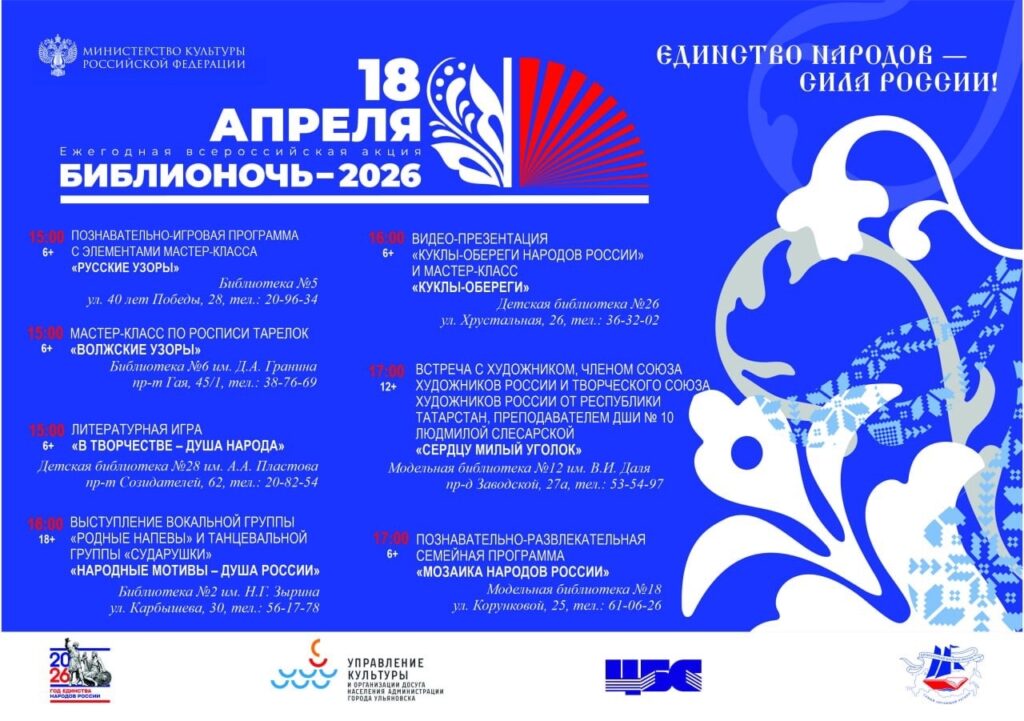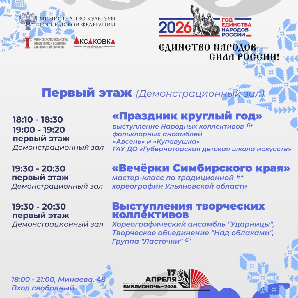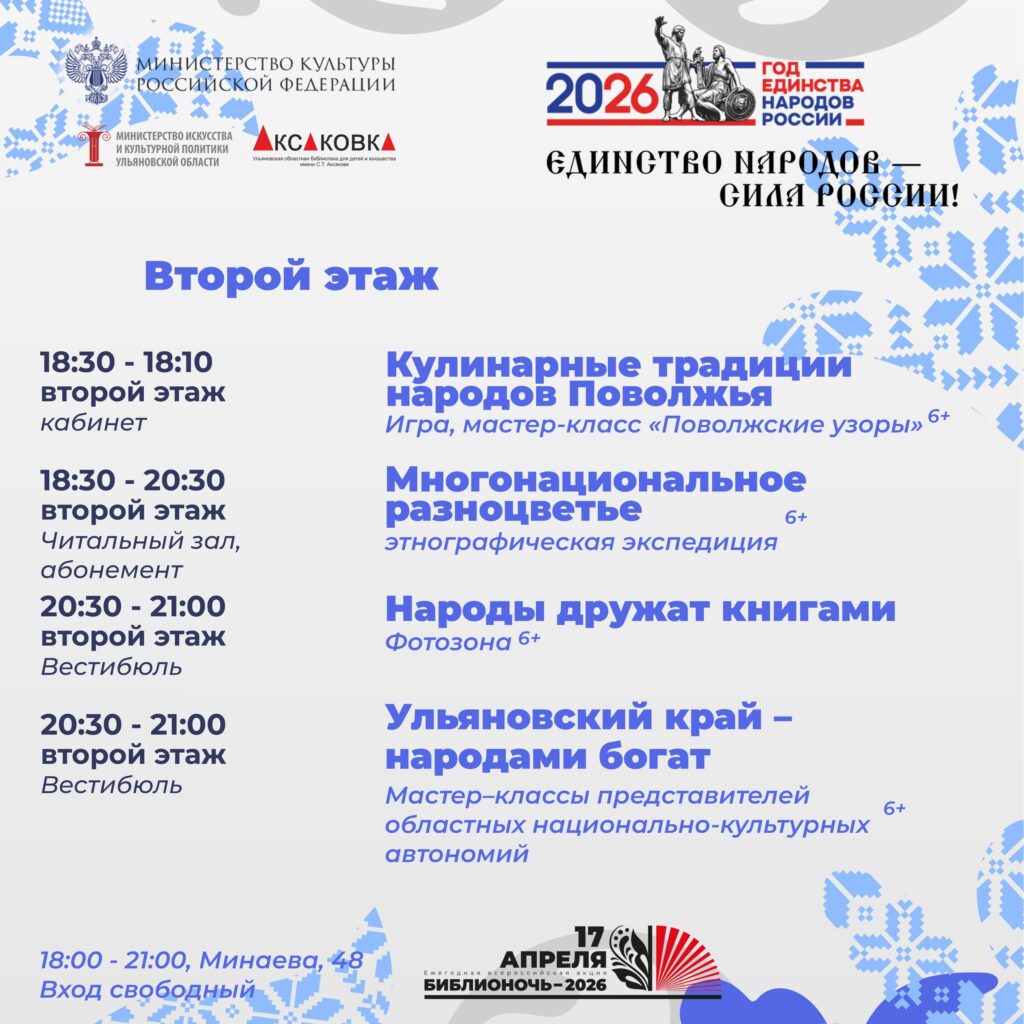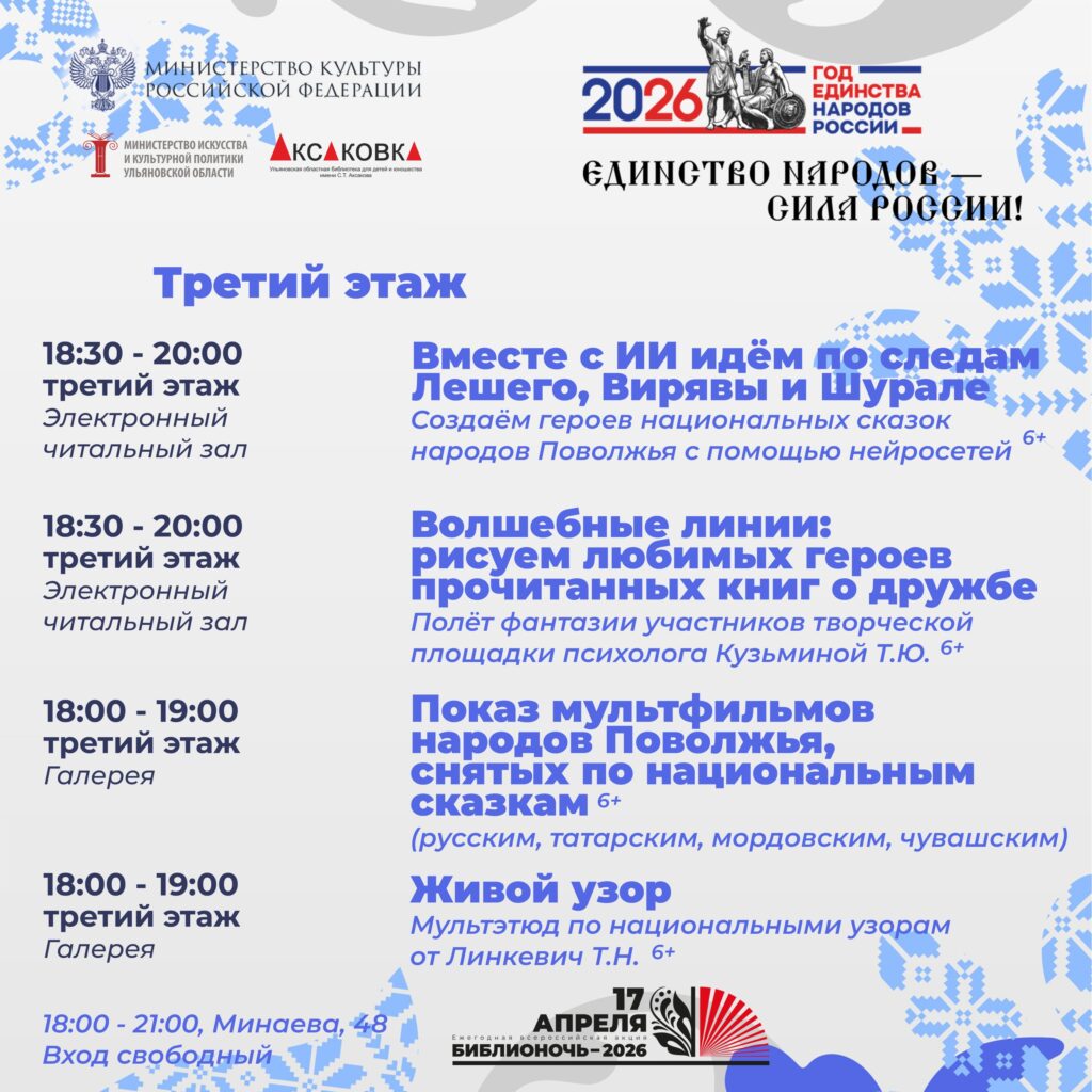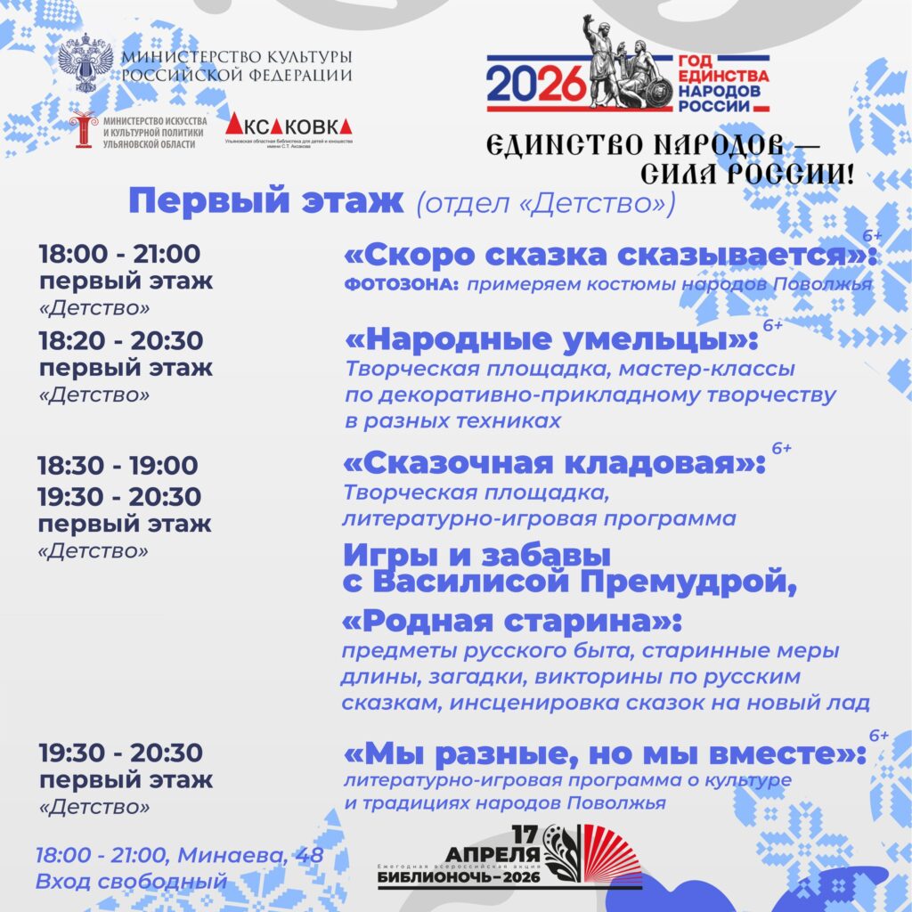 Библионочь в Аксаковке — 17 апреля с 18:00 до 21:00 вас ждёт настоящее путешествие по культуре народов России: творческие площадки, фотозоны, игры, музыкальные выступления, мастер-классы и не только!