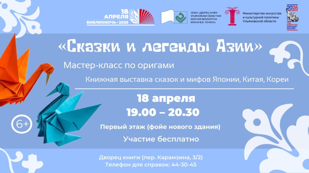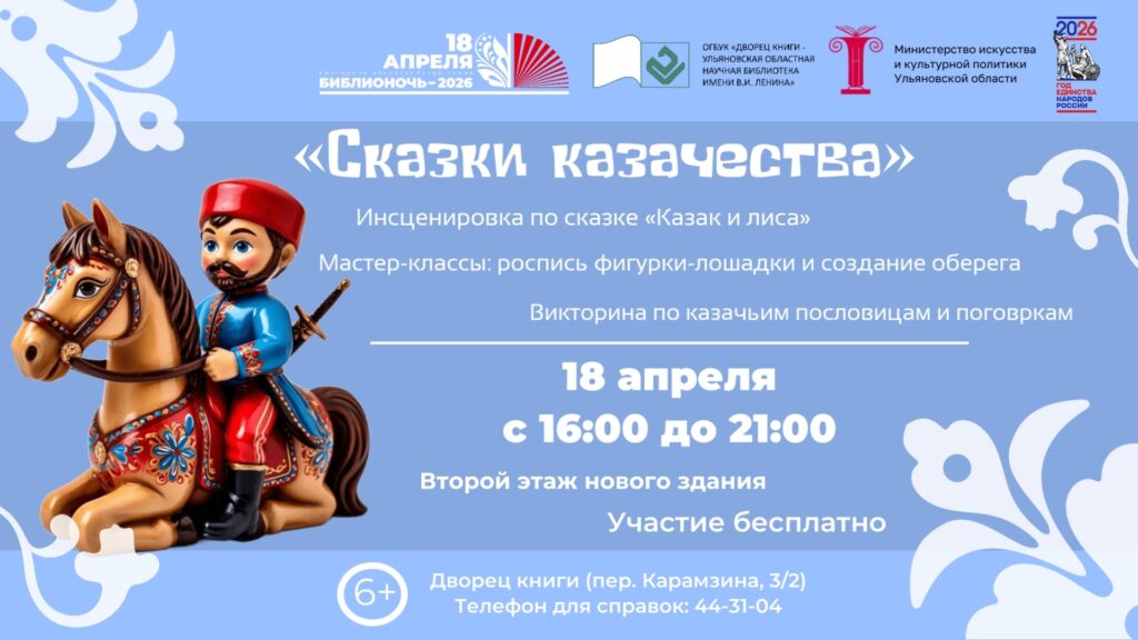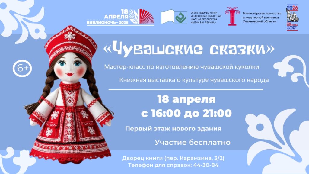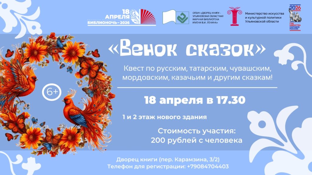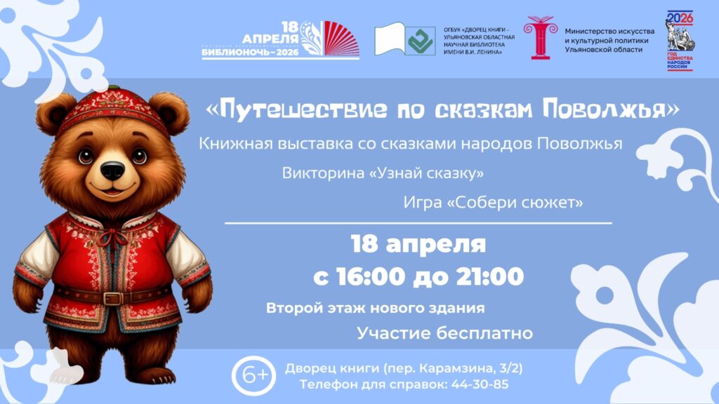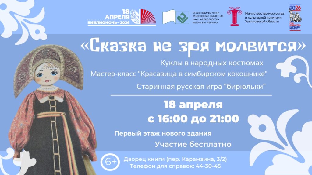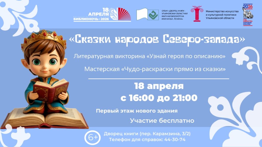18 апреля с 16.00 до 21.00 в рамках Всероссийской акции «Библионочь-2026» во Дворце книги случится настоящая сказка!