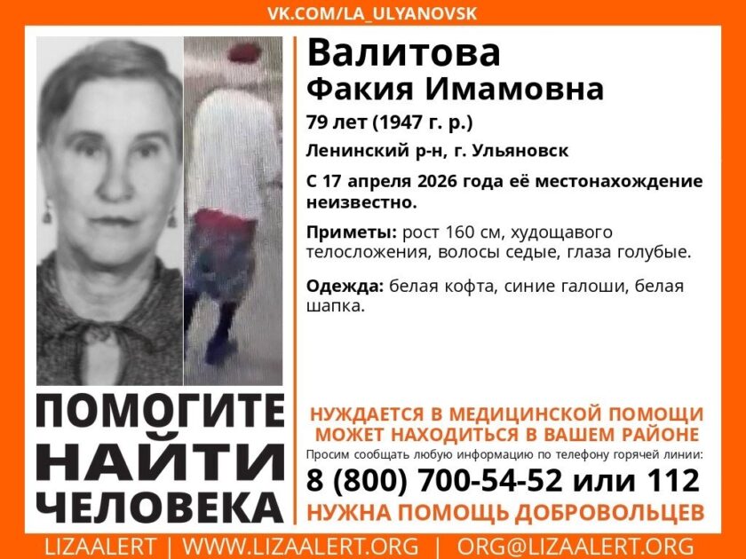 В Ульяновске пропала пожилая женщина. Всем, к то владеет какой-либо информацией о ее местонахождении, просят сообщить по телефону: 89033390452 — Альбина (Матур).