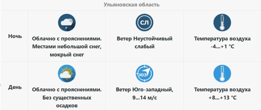 660Прогноз погоды в Ульяновской области на 21 апреля -