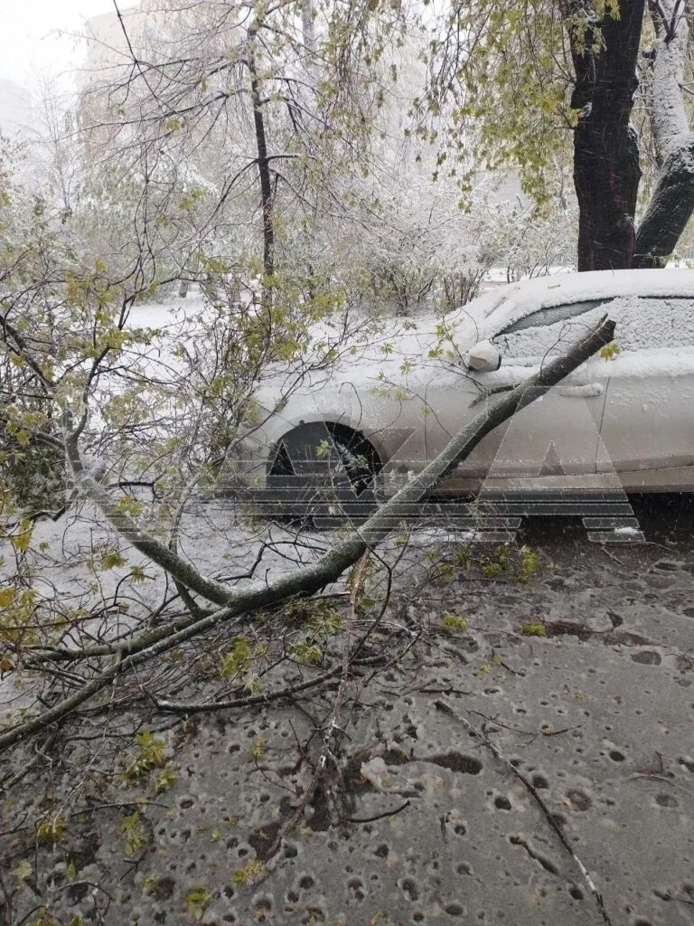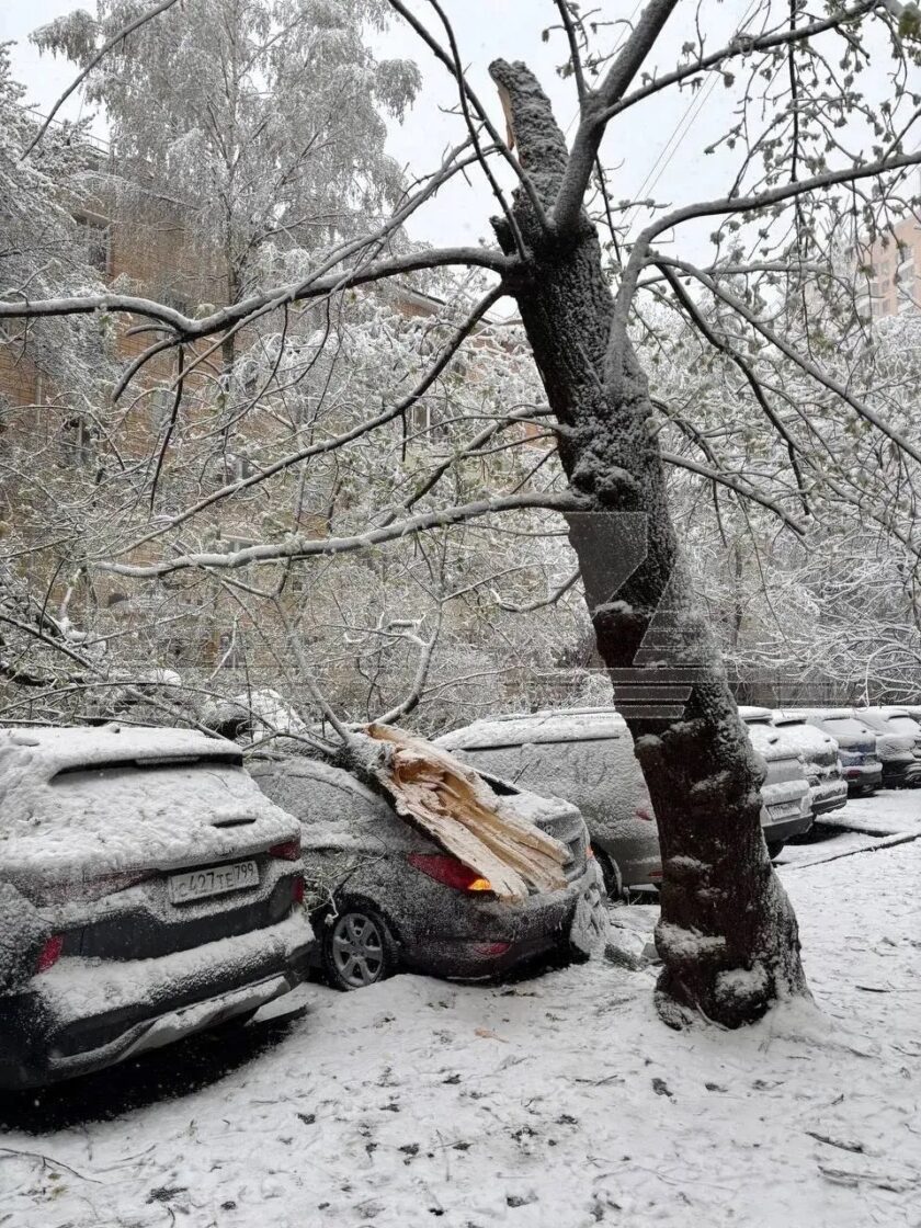 Москву засыпало снегом: 50 самолетов не смогли вылететь, десятки деревьев упали, в том числе на автомобили