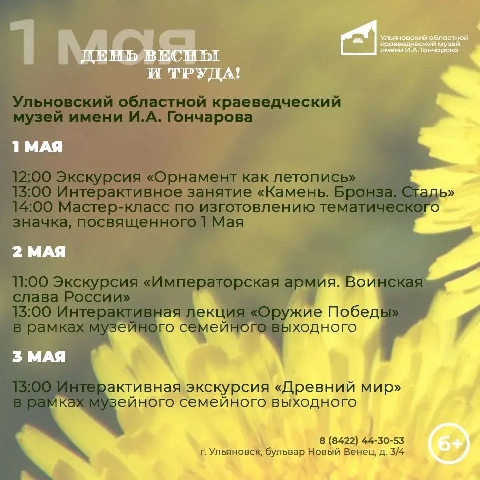 Ульяновский краеведческий музей опубликовал афишу мероприятий на Первомай