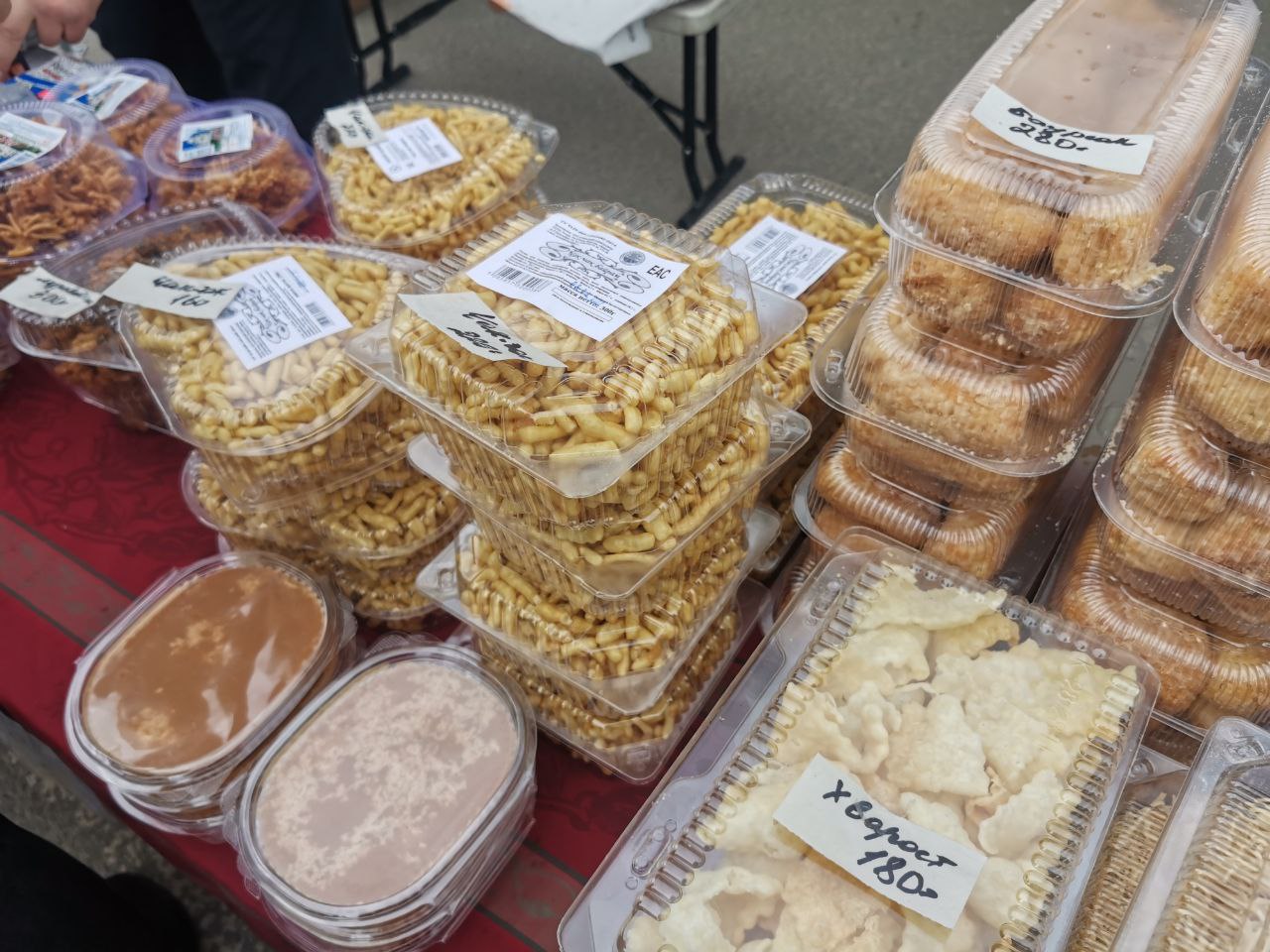 Продавцы предлагают продукты: от мяса и рыбы, до сыров и овощей. Кроме того, на ярмарка продаются стойкие оловянные солдатики, глиняная посуда и декоративные фигурки.