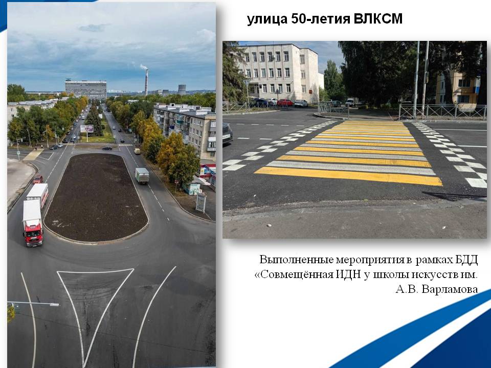 Помимо ремонта автодорог в порядок приведены тротуары, нанесена дорожная разметка, обустроены остановочные площадки, пешеходное ограждение, пандусы на пешеходных переходах, подняты люки подземных коммуникаций и дождеприемных решеток, модернизировано освещение с заменой старых ламп на энергосберегающие светодиодные.