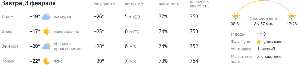 2172Погода в Ульяновске на 1 февраля -